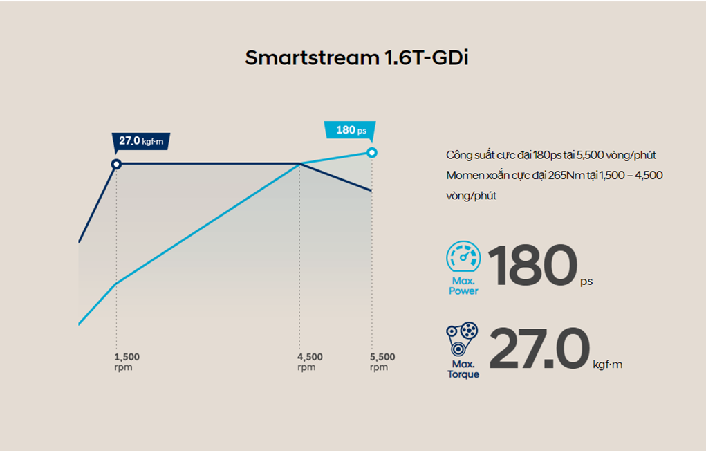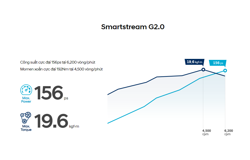 Nhấn bàn đạp ga và cảm nhận nhịp cảm xúc của bạn với sự bứt tốc phấn khích mà mượt mà của động cơ Smartstream, công nghệ động cơ mới nhất của Hyundai.